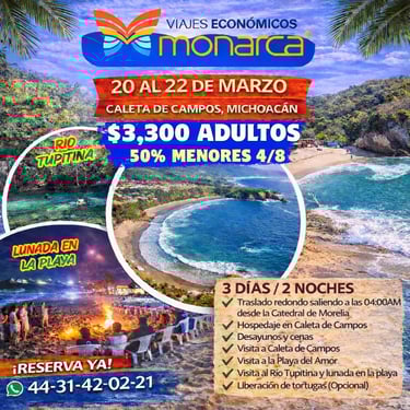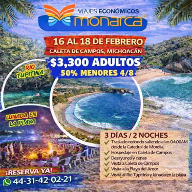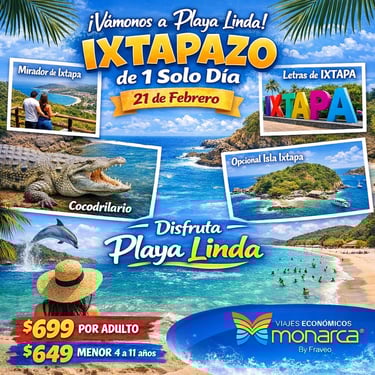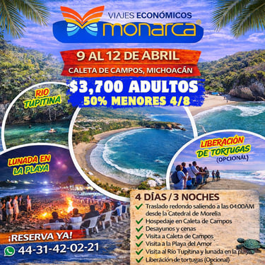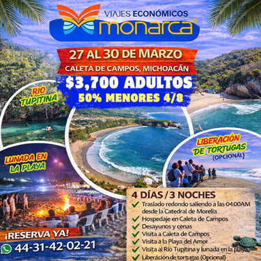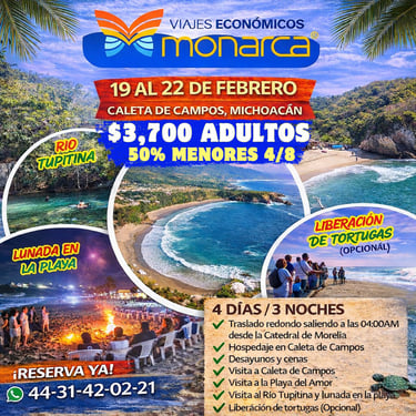 En Viajes Económicos Monarca, creemos que viajar no debe ser un lujo, sino una oportunidad accesible para todos. Nos especializamos en crear experiencias inolvidables al mejor precio, asegurándonos de que cada viaje sea una combinación perfecta de aventura, comodidad y ahorro.